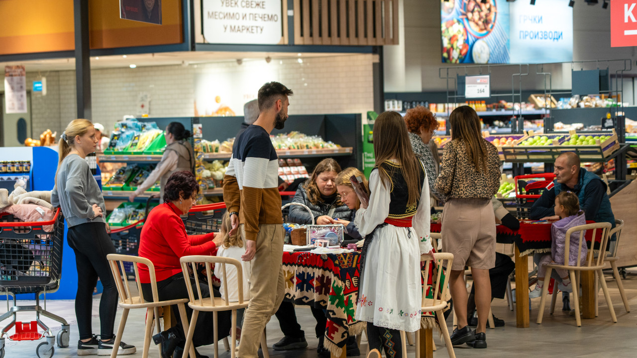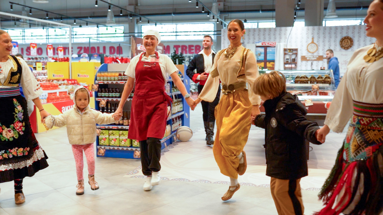 Posebnu pažnju privukao je trenutak kada se kolo spontano zaigralo među rafovima. Uz narodnu muziku krenuli su plesači u narodnim nošnjama, a velikom brzinom se priključili kupci i zaposleni, poručuju iz kompanije.