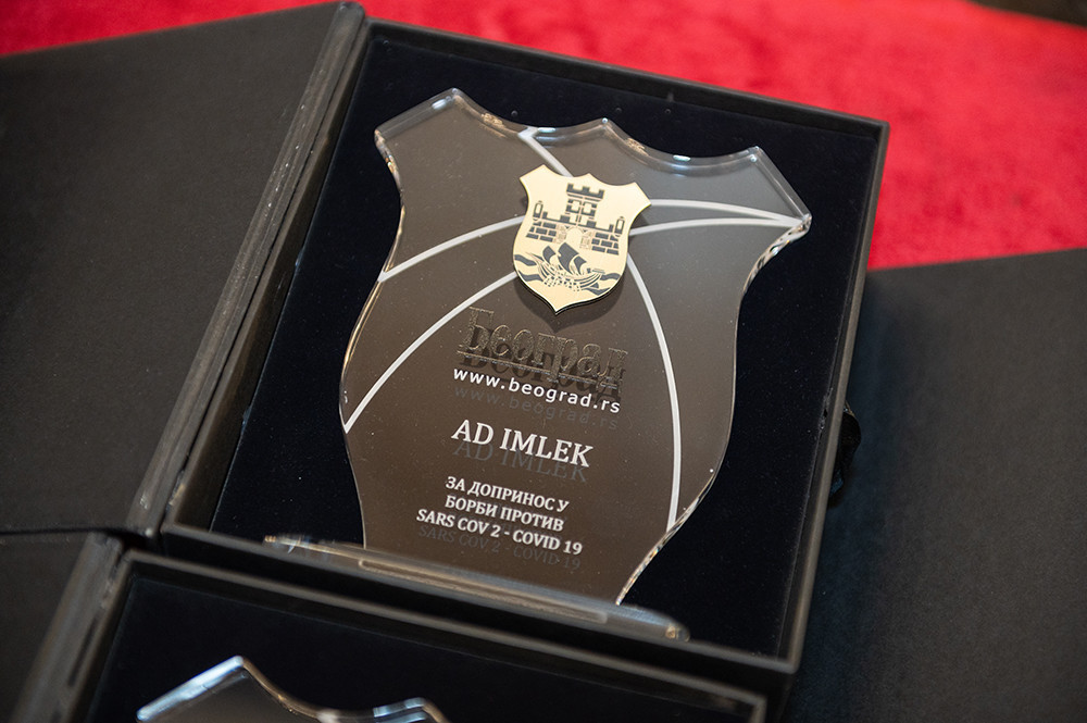 Plaketu za doprinos u borbi protiv korona virusa Grad Beograd dodeljuje u znak zahvalnosti kompanijama koje su dale nemerljiv doprinos i beskompromisno učestvovale u zajedničkoj borbi za očuvanje zdravlja čitave nacije. Uručena je onima koje su podržale napore nadležnih institucija i pomogle u periodu kada je mnogima to bilo neophodno, time pokazavši solidarnost, požrtvovanost kao i veliku odgovornost u vanrednim situacijama.