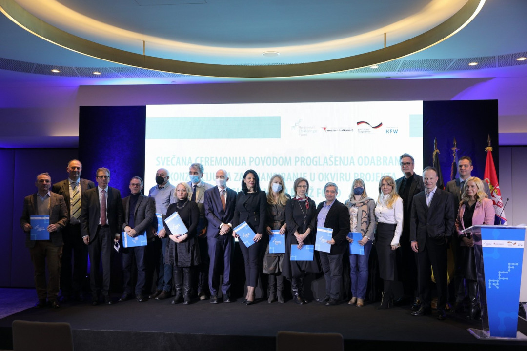 Na Svečanoj ceremoniji koja je upriličena povodom proglašenja odabranih konzorcijuma u okviru prve faze projekta Regionalni čelendž (challenge) fond, predstavljeni su projekti koji će dobiti sredstva, i dodatno je istaknut značaj finansiranja ovakvih projekata za dalji razvoj naše privrede i ekonomiju Zapadnog Balkana.