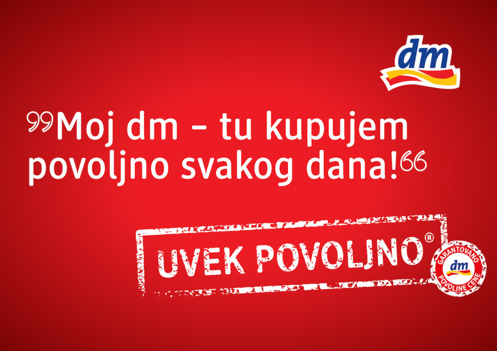 Od sada, umesto proizvoda na dvonedeljnim i mesečnim akcijama, dm svojim kupcima nudi veliki broj artikala koje karakterišu dugoročno povoljne cene. Broj proizvoda po UVEK POVOLJNO cenama kontinuirano će se uvećavati, a njihove cene će garantovano ostati iste minimum četiri meseca. Uz to, važan parametar je i da dugoročno povoljna cena bude znatno niža od redovnih cena na tržištu, ističu iz dm-a.