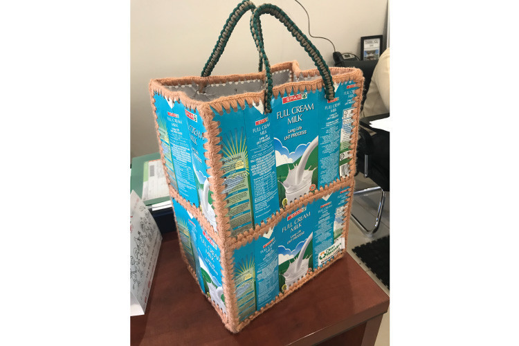 Kartoni se preuzimaju sa sabirnih mesta za reciklažu, seku, presuju i temeljno čiste kako bi se uklonili ostaci mleka. Kada se karton osuši, priprema se za dalju proizvodnju. Za svaku torbu neophodno je devet pakovanja kartona od mleka.