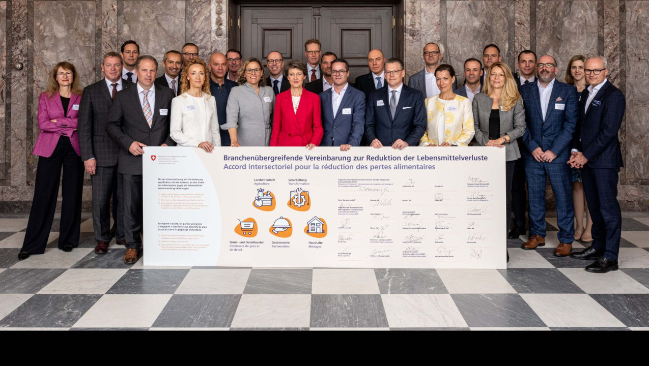 Šef kompanije Emmi Switzerland, Marc Heim, savezna odbornica Simonetta Sommaruga i predstavnici 28 švajcarskih kompanija i udruženja iz sektora maloprodaje i veleprodaje, poljoprivrede, ugostiteljstva i prerađivačke industrije potpisali su 12. maja 2022. međuindustrijski sporazum o smanjenju rasipanja hrane.