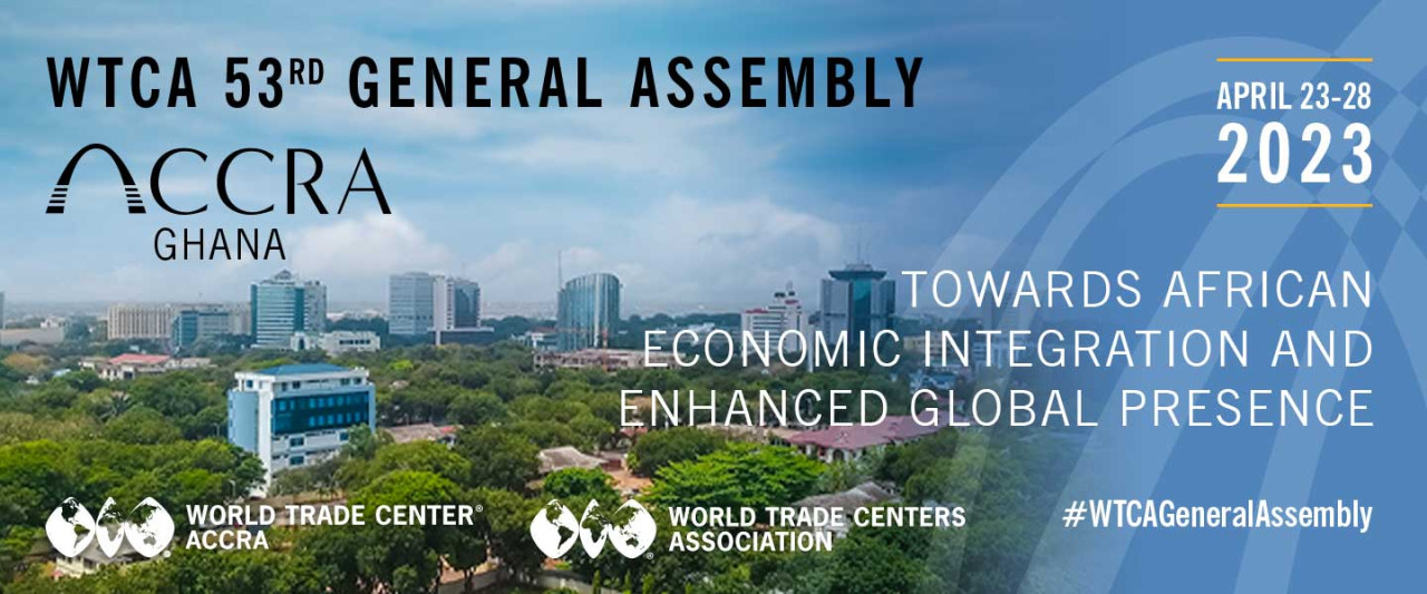 Generalna skupština za 2023. godinu na temu "Ka afričkoj ekonomskoj integraciji i unapređenom globalnom prisustvu" potvrđuje snagu WTCA mreže i bavi se poslovnim vezama na afričkom kontinentu sa kupcima i investitorima iz različitih sektora, kao što su poljoprivreda, poljoprivredne tehnologije, prerada hrane, proizvodnja, rudarstvo, električna energija i energetika, vodoprivreda i drugi. Afrički kontinent ima BDP u vrednosti od 12,7 biliona dolara i njenih 1,4 milijarde stanovnika predstavlja populaciju sa najvećom stopom rasta na planeti. Sa prosečnom starošću od 15,7 godina, afričko mlado stanovništvo će tek dati svoj ekonomski i geopolitički doprinos.