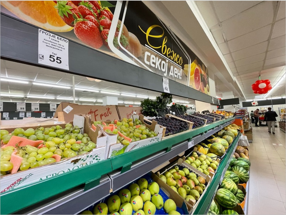Asortiman uključuje i sveže meso i ribu, sveže voće i povrće, pekaru sa svežim pecivom, proizvode privatnih marki i najrazličitije svetske marke prehrambenih proizvoda.