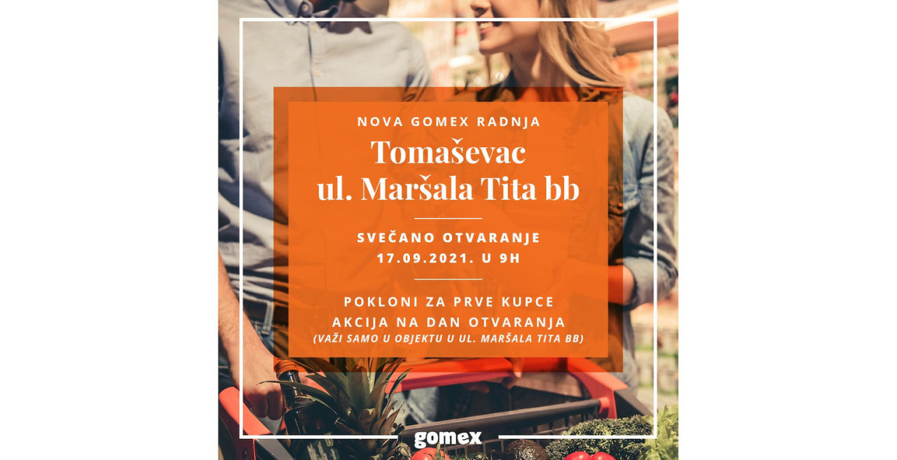 Trgovačka kompanija Gomex će u petak, 17. septembra u 9 časova otvoriti vrata novog maloprodajnog objekta u Tomaševcu.
