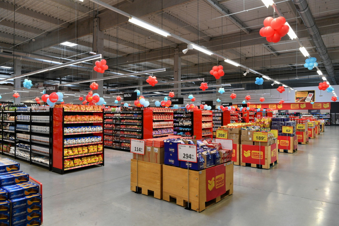Moderan hipermarket prostire se na više od 3.000 kvadrata pružajući maksimalan komfor pri odabiru raznovrsnih proizvoda koji odgovaraju na potrebe svakog člana domaćinstva.
