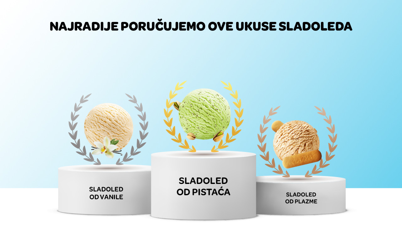 Iako je sladoled od vanile najčešći izbor širom sveta, Beograđani su ovaj ukus plasirali na drugo mesto, dok je visoko na tronu ukus pistaća. Sladoled sa ukusom plazme je zauzeo treće mesto.
